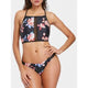 Lace Overlay Spaghetti Strap Lattice Cut Bikini - Wine Red M