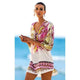 2017 Newest Women Cotton Printed V-Neck Beach Blouse