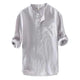 Mens Linen Long Sleeve Stand Collar T-Shirt